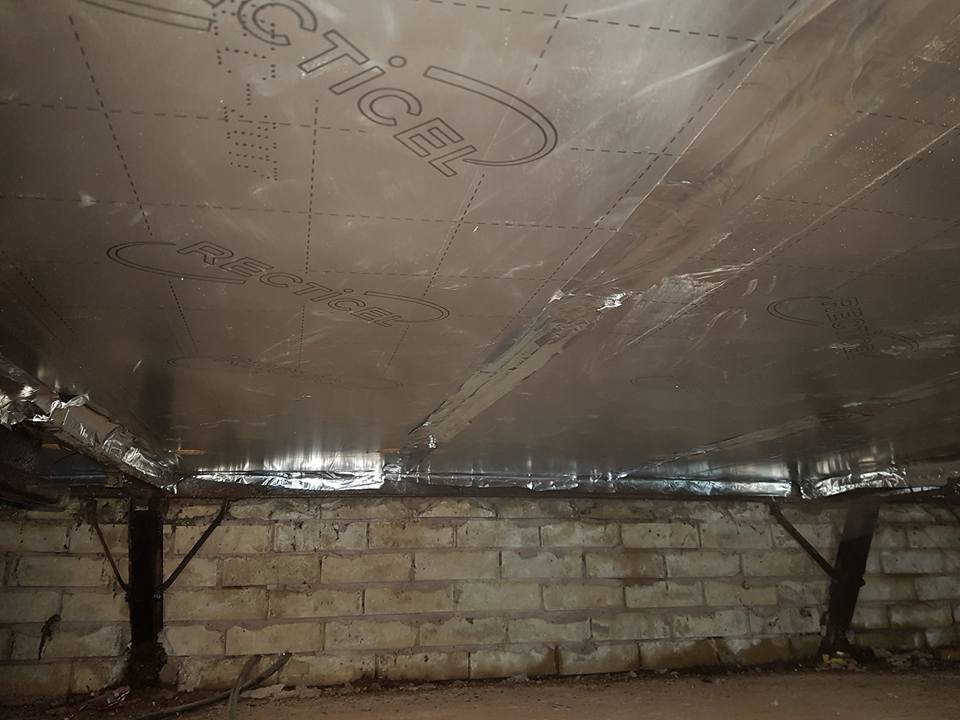 The other type of insulation often used in park homes is foil insulation. Rather than trapping air bubbles in its bulk, foil uses its reflective surface to deflect heat back from where it came. Whether that heat is coming from outside or inside. A common place to find foil type products on park homes is under the floor.